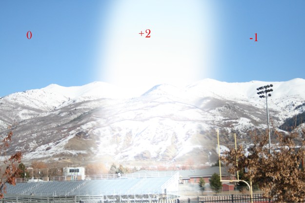 There are three different types of light exposure in these photos. The object was very far so it was harder to get a good measure of light in the mountain. Which is why I could only manage to get -1 and not -2 light exposure.
